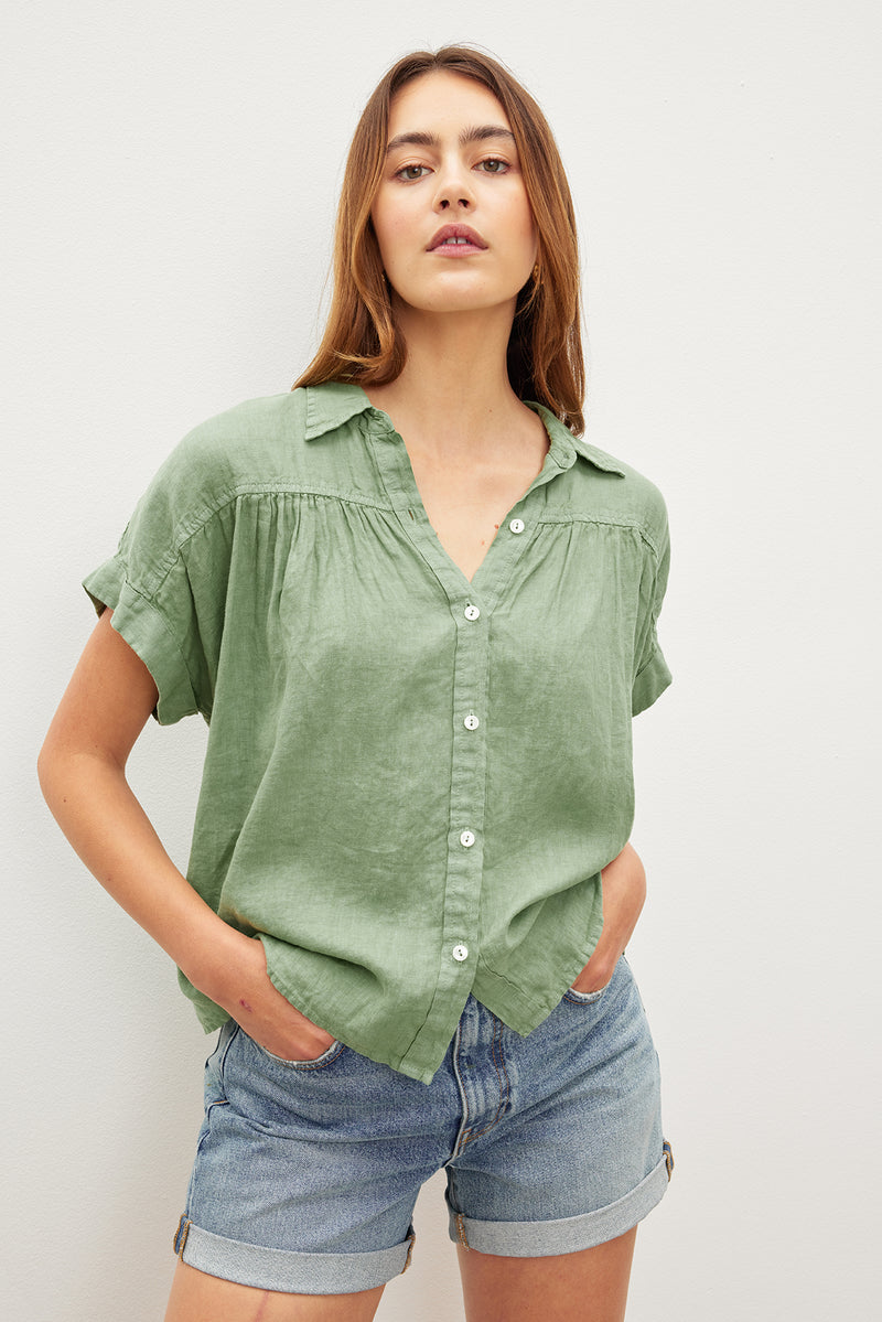 Just adorable, love te light green color. It's a wonderful breezy shirt for a hot day. Love the look with the short jean shorts as picture. The quality and attention to detail are great (which I would expect given the price). In Velvet tops I'm equally likely to need L or XL, depending on the style, generally needing to size up for bust size. Here size L fit better, with still very loose fit, while XL was decidedly too big.