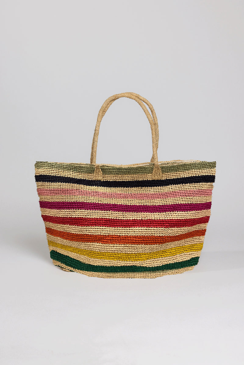 Ideal for shopping, beach days, or just everyday use. Crafted from 100% natural raffia, this lightweight piece features colorful stripes and woven handles for on-the-go convenience and a chic look. You’ll love reaching for this bag again and again.
