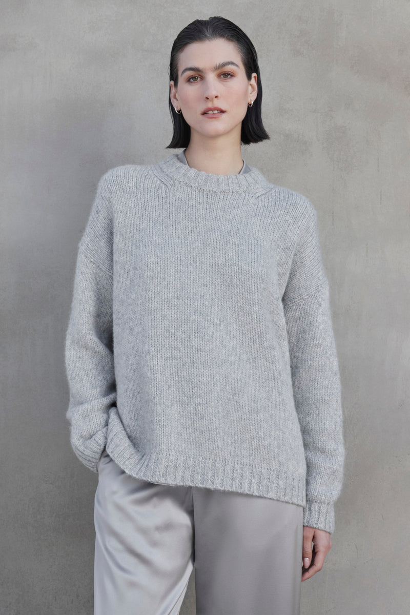 Stay warm and stylish with this alpaca blend sweater, featuring a relaxed oversized fit and drop shoulders. Finished with ribbed details at the neckline, cuffs, and hem, it's perfect for the colder months.