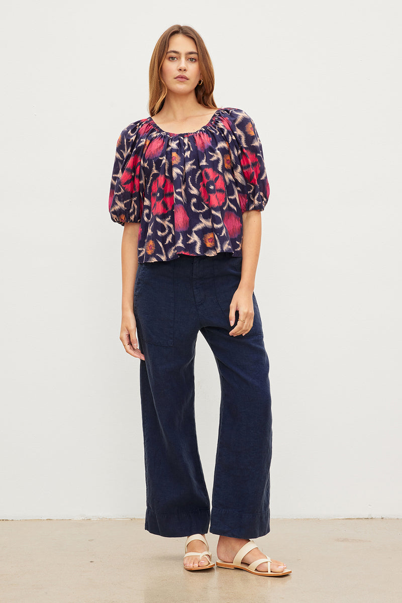 Stay cool and stylish in this heavy linen pant. Crafted from a heavier linen fabric, these cropped, wide leg pants feature a button and zipper closure, slash pockets, and patch pockets for a classic, timeless look.