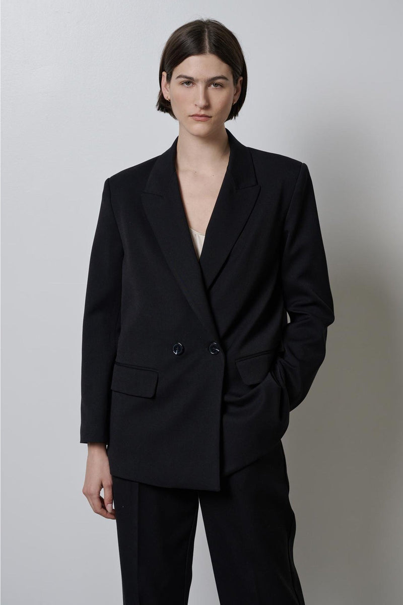 Say hello to your new favorite blazer. A mid-weight woven that’s perfect for now and later, in a seasonless double-breasted silhouette with a slightly oversized fit, which makes it easy to dress up or down. The structured shoulder gives it a flawless drape.