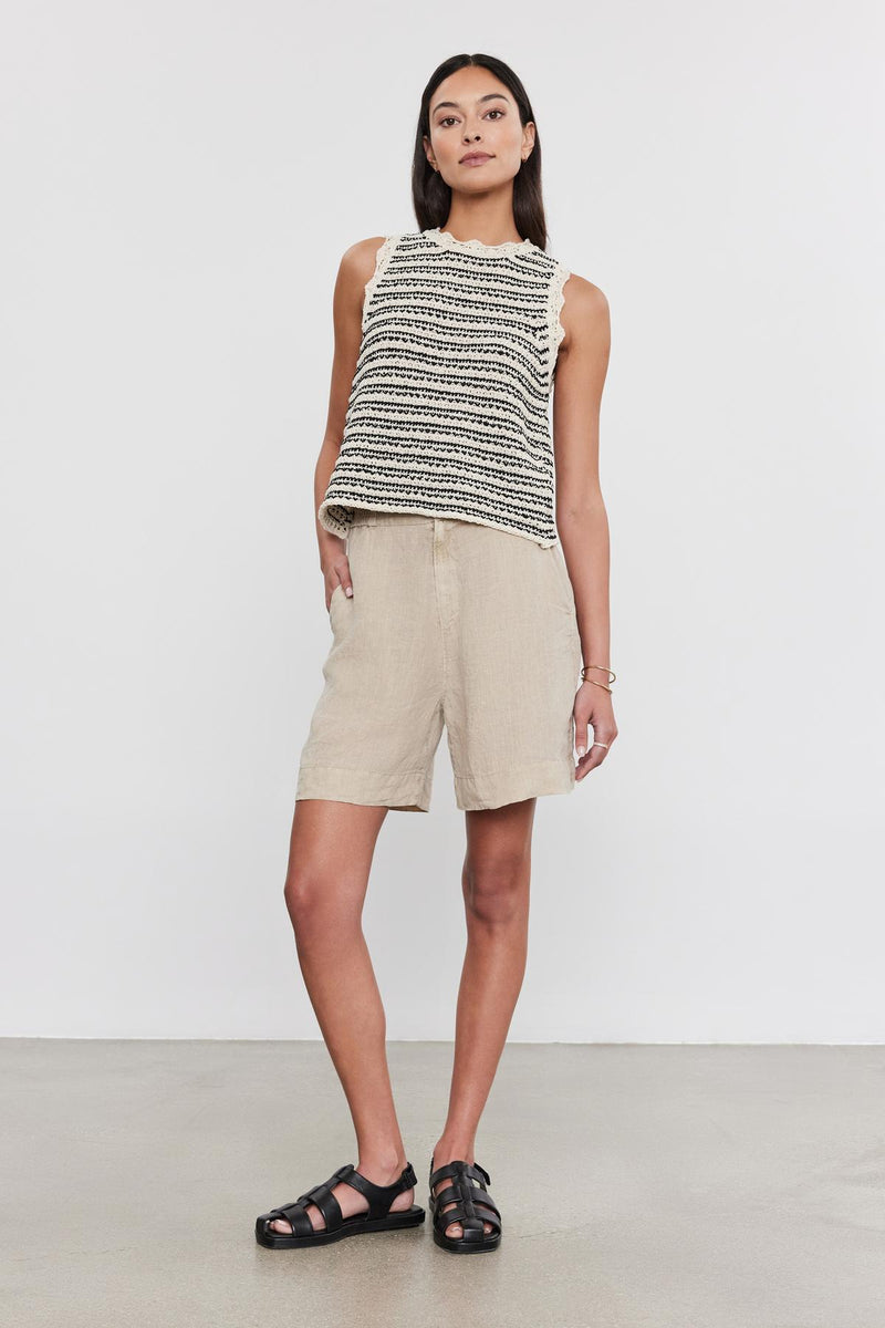 Elevate your summer wardrobe with the Francis Short. Crafted from breathable woven linen, this versatile piece features a button zipper closure and partial elastic waist for a comfortable fit. Complete with inseam pockets and two rear patch pockets, it combines style and functionality effortlessly.