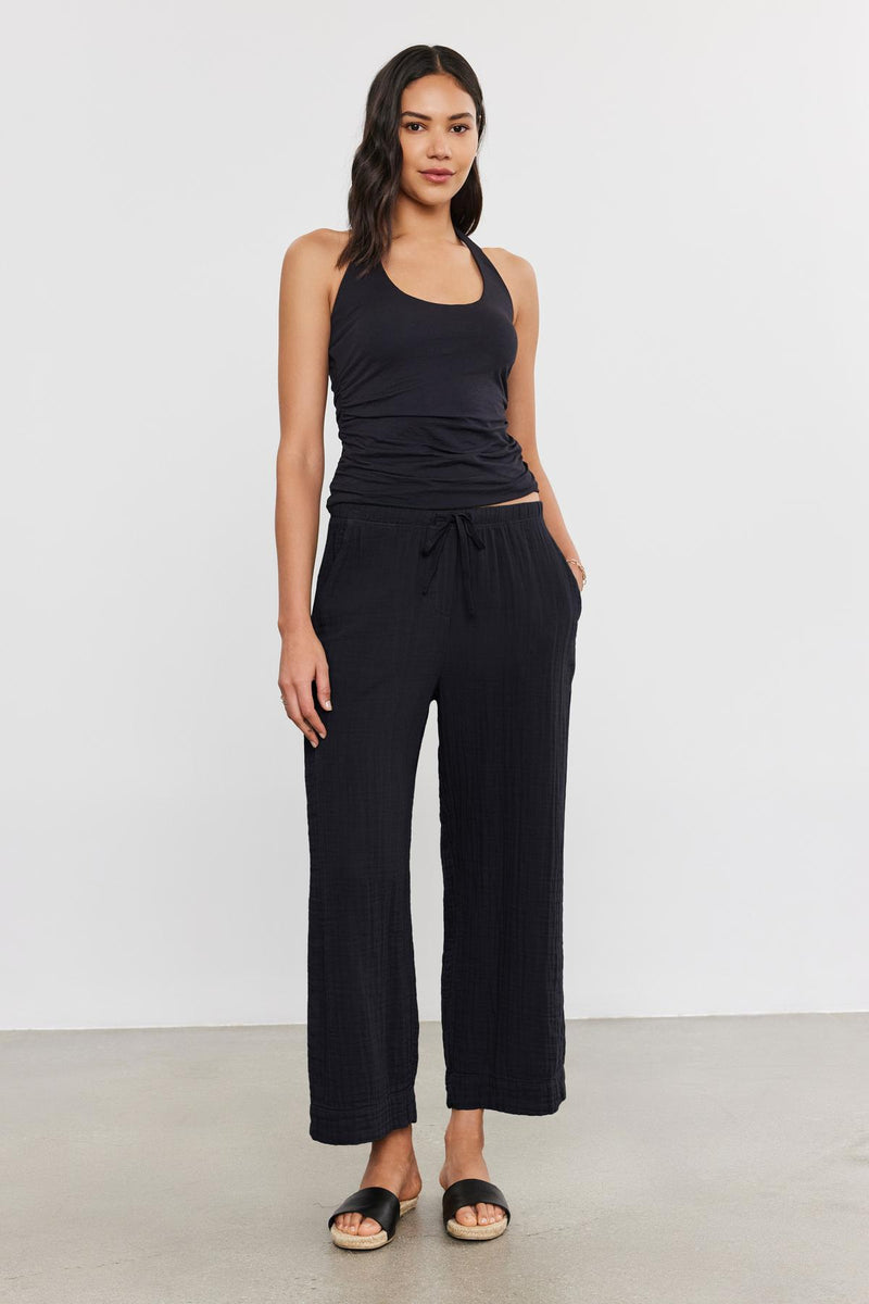 Every closet could benefit from these versatile cotton gauze pants. Designed with a pull-on waistband for effortless wear, they feature a relaxed leg that moves with ease. The ever-essential slash pockets add functionality, making them perfect for casual outings or lounging in style.