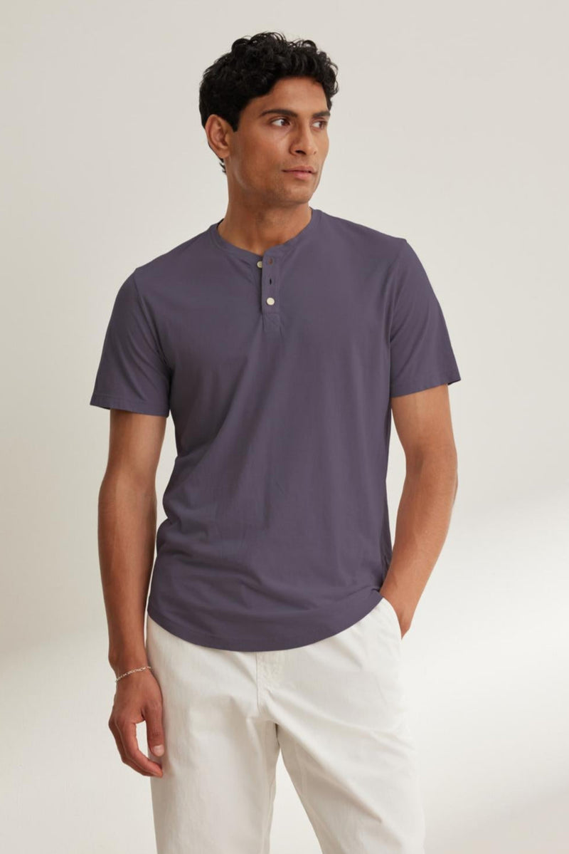 A classic 3-button henley tee made from a soft lightweight Pima jersey, featuring a curved hemline. Perfect for layering up or flying solo.