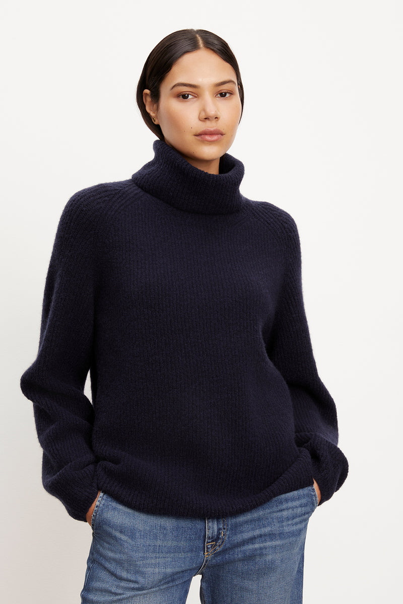 There is no denying the charm of a turtleneck, it’s the epitome of cozy dressing. A chunky rib with a classic rollover neck, as well as raglan seams. A wool blend that has a hint of yak yarn to give it extra softness.