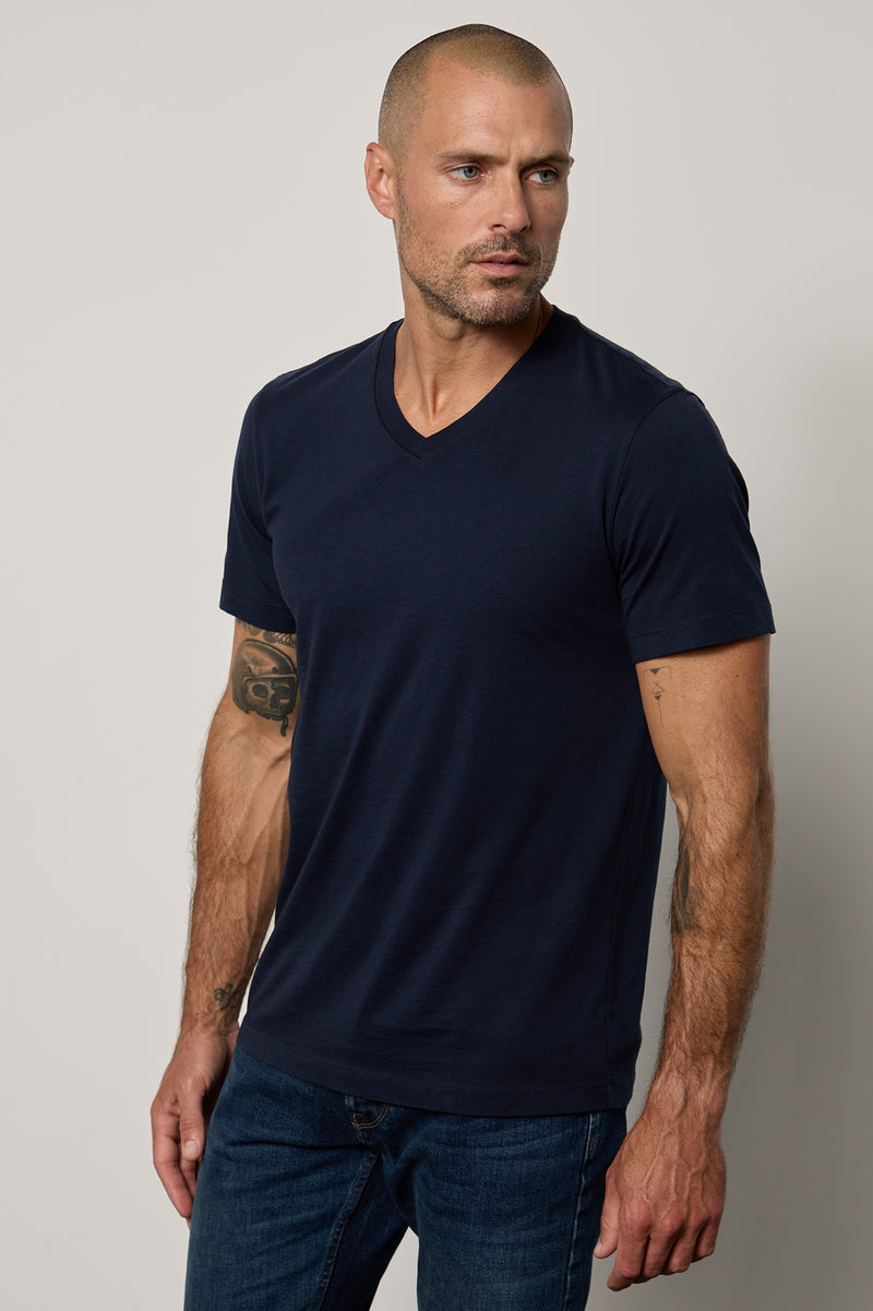 Crafted from 100% cotton, this regular fit tee features a stylish v-neckline for a timeless look. Whether you're out at the gym or running errands around town, it's the perfect choice.