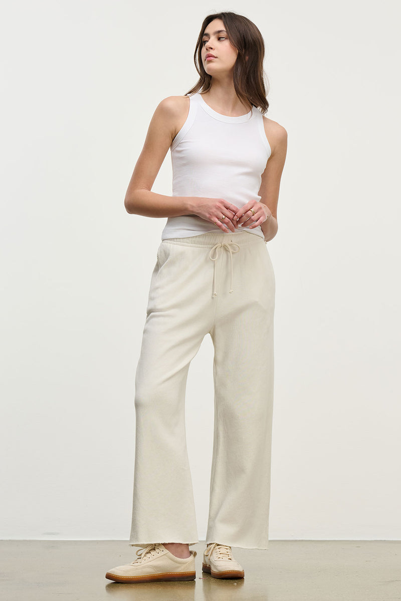 We can’t get enough of this relaxed-fit jogger bottom. Crafted from a soft organic cotton with a fleecy inside for extra coziness, these sit low-slung on the hips with a flared leg and a raw-edge hem so you can crop to your preferred length.