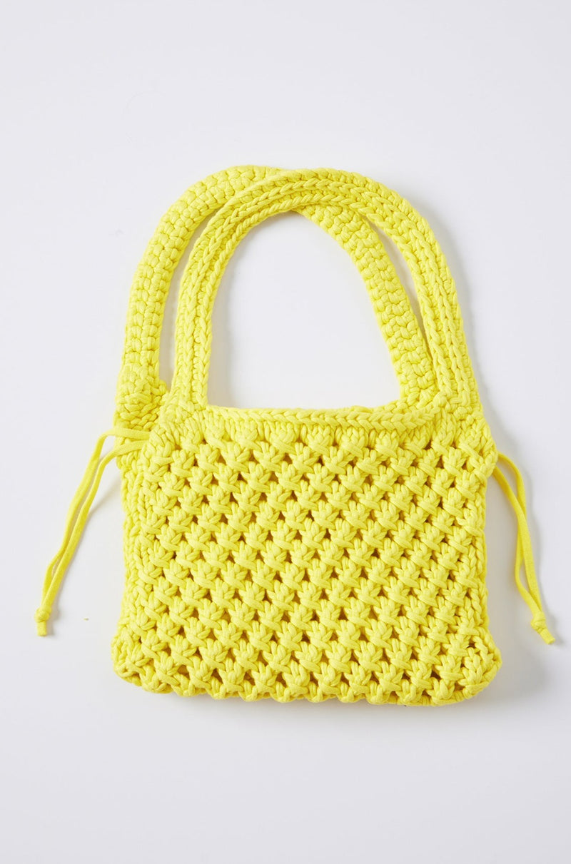 It's the larger version of the best selling, Bennie Crochet Bag. Crafted from a chunky cotton cord in an open stitch, this bag also features a jersey cotton drawstring lining to keep all of your incidentals secure.