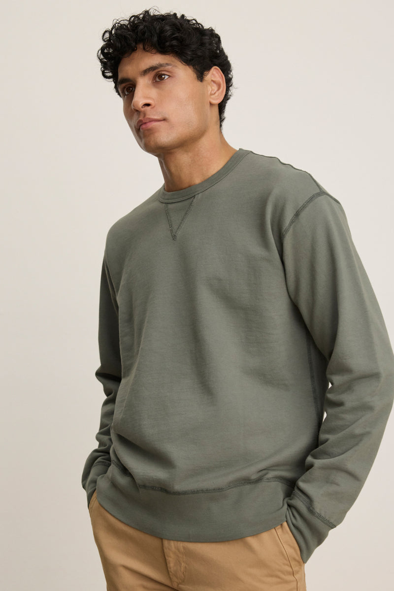 Crafted from premium loopback French terry, this sweatshirt blends timeless comfort with athletic-inspired details. Featuring a classic crew neckline, inset sport-V, and ribbed cuffs and hem, it's sure to become an essential piece that is perfect for layering or stand-alone wear.