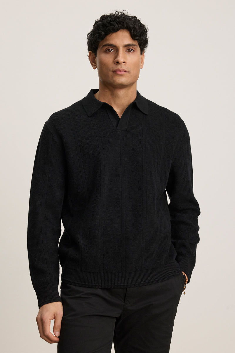 With a clean, button-free placket and ribbed trims, this sweater polo is crafted from a soft cotton-wool blend for durable comfort and sharp style. This sweater offers modern update on a classic design—built for versatile layering or wearing on its own.