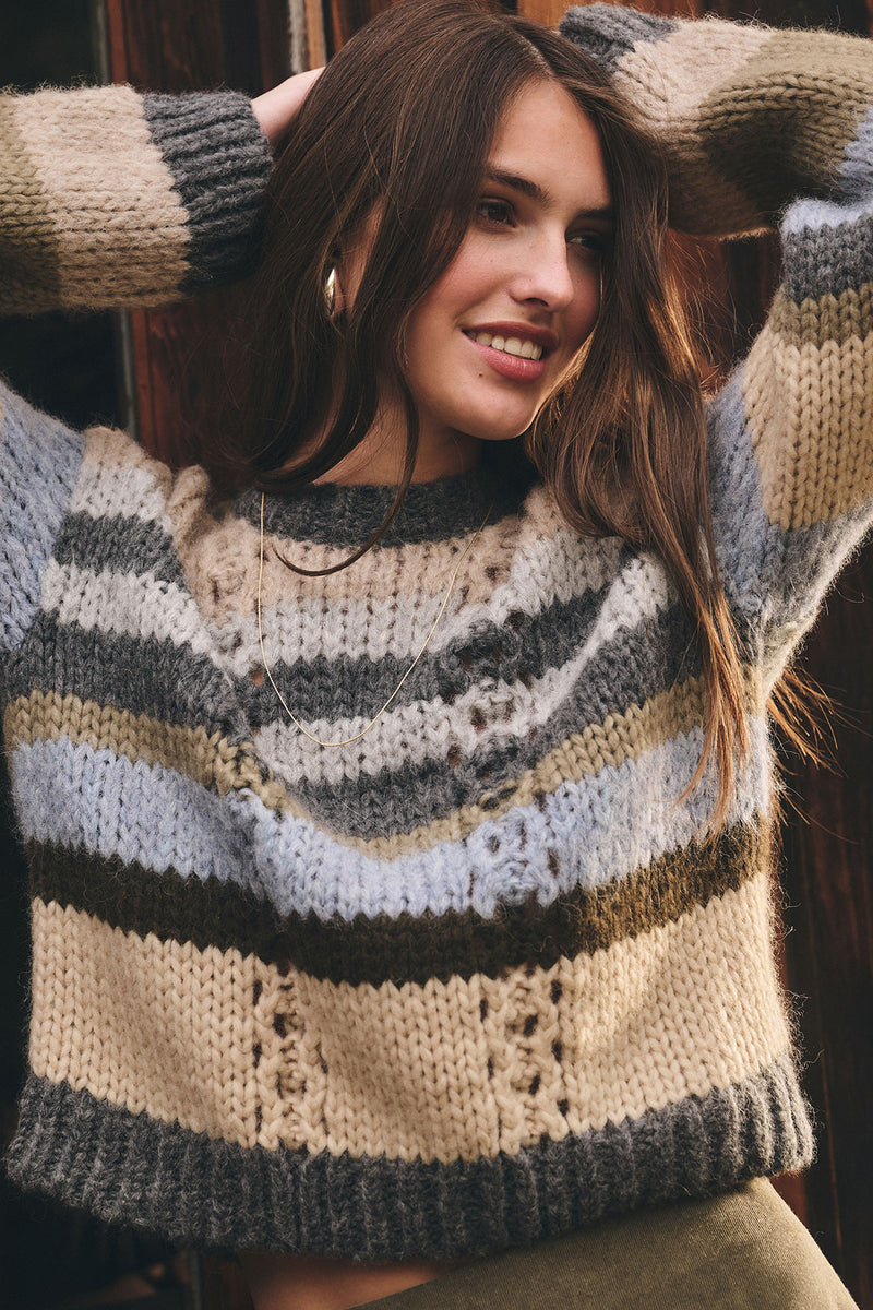 With a relaxed, boxy fit and slightly cropped silhouette, this must-have sweater is crafted from a soft alpaca blend for cozy warmth. Featuring a classic crew neckline and subtle cable knit detailing, it adds understated texture to your look.