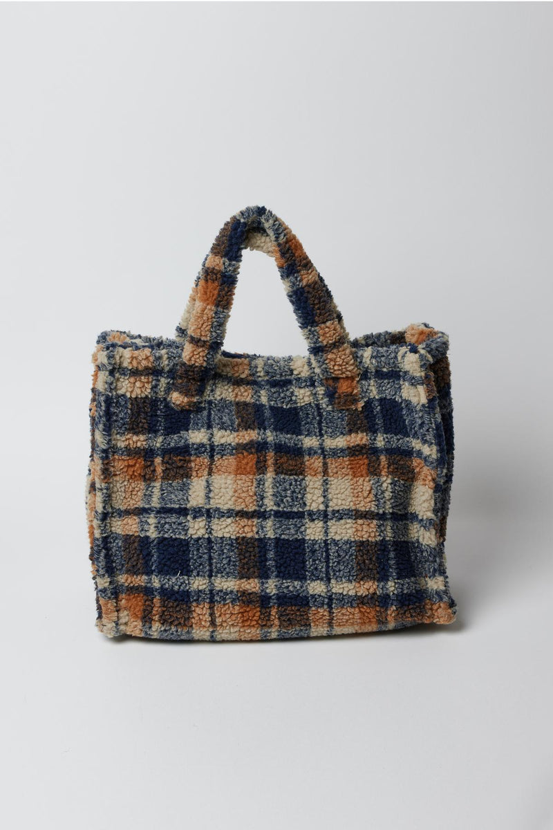 Crafted from a fluffy faux shearling in cold-weather plaid, this everyday tote has soft handles and the perfect size for on-the-go essentials.
