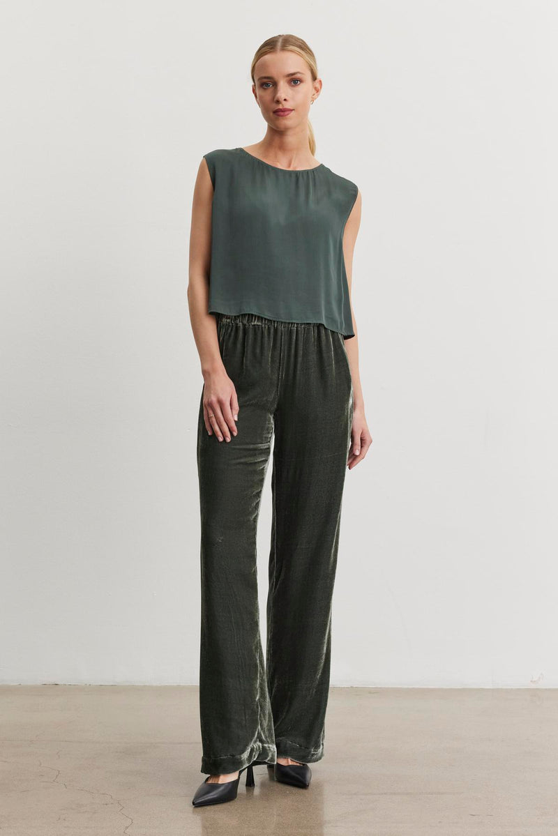 Crafted from luxurious silk velvet, these wide-leg pants feature an elastic waist and slash pockets for an effortlessly refined look and feel.