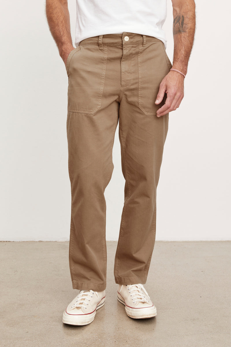 Expertly crafted from sanded twill and garment-dyed for a vintage look, these pants offer durability and comfort. Featuring a classic straight leg and button zipper closure, they also provide ample storage with slash and rear patch pockets.